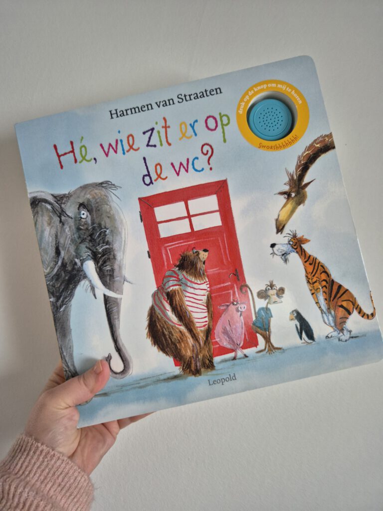 Al jaren zijn de boeken van Harmen van Straaten in mijn boekenkast te vinden. Onlangs heb ik deze klassieker vervangen voor een nieuwere versie. Laten we het eerst even over het verhaal hebben. Dit boek is en blijft één grote giechelfestijn. Hé, wie zit er op de wc? is een ondeugend rijmprentenboek waarin dieren héél nodig moeten, maar moeten wachten tot de wc eindelijk vrijkomt. Dat zorgt voor herkenbare, grappige situaties waar kinderen meteen helemaal in zitten. Er zitten meer dan voldoende personages om met stemmetjes en geluiden te spelen en om het boek zelfs na te spelen/ De illustraties zijn expressief en vol humor, waardoor er op elke pagina iets te lachen valt. Kinderen willen dit boek dan ook graag nog een keer horen. En nog een keer. Maar wat zo waanzinnig is aan deze versie: er zit een geluidsbutton op! Iedere keer als je op de knop drukt, trek je de wc door! SWOESJH! Deze toevoeging maakt dit boek een nog grotere hit dan het boek al was! Geschikt vanaf de peuterleeftijd t/m groep 3.