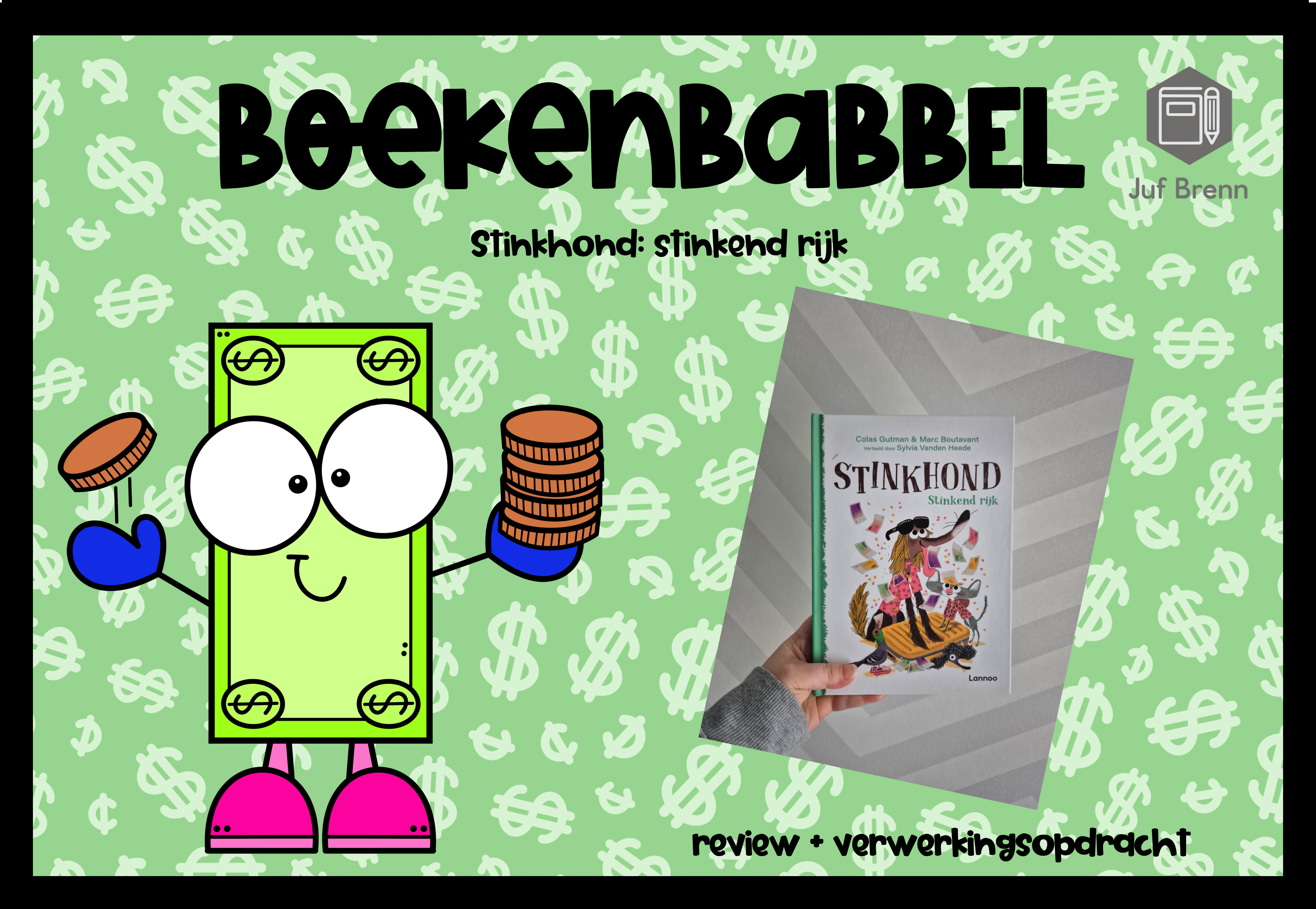 Ik ben fan van Stinkhond! Dus iedere mogelijkheid om een boek van Stinkhond voor te lezen, grijp ik aan! Tijdens de week van het geld is Stinkhond: stinkend rijk, het perfecte boek om voor te lezen. Stinkhond vindt een koffer vol met geld in zijn vuilnisbak en hij raakt bijna bezeten door al het geld. Hij koopt allemaal dingen en raakt helemaal bedorven van het geld! Hij is zichzelf niet meer. Lukt het Stinkhond om zichzelf terug te vinden? Plattekat heeft wel een idee, maar is het nog op tijd? Of ziet Stinkhond alleen nog maar geldtekens in zijn ogen en is hij de Dagobert Duck van de honden geworden? Geschikt voor groep 3/4.