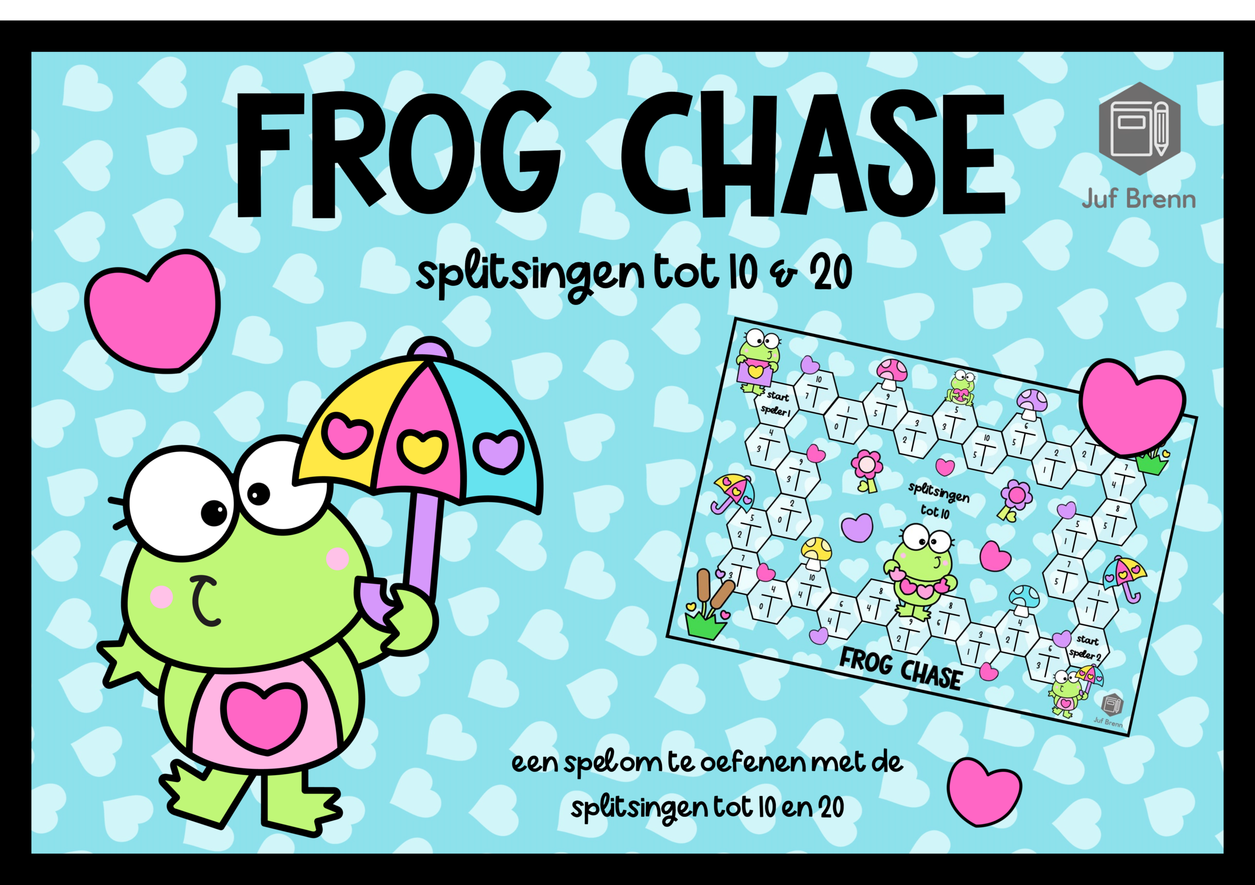 NIEUW! Frog Chase! Met dit spel kun je leerlingen laten oefenen / automatiseren met de splitsingen tot 10 en 20 geheel in het thema: Valentijn!