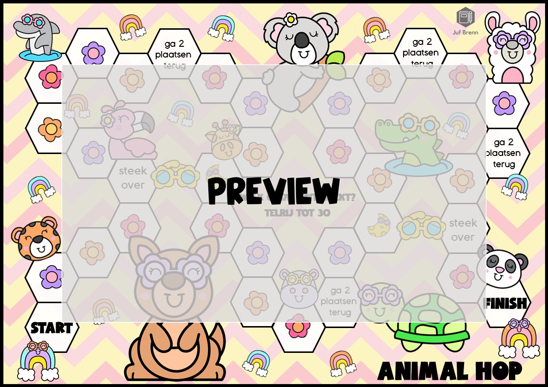 Deze download bevat Hop. Dit spel kan gebruikt worden voor het oefenen met de telrij tot 30. Het is een spelbord, een spinner en 56 kaartjes. Wil je meer weten over dit spel? Kijk dan hier. Het is geschikt voor groep 3/4.