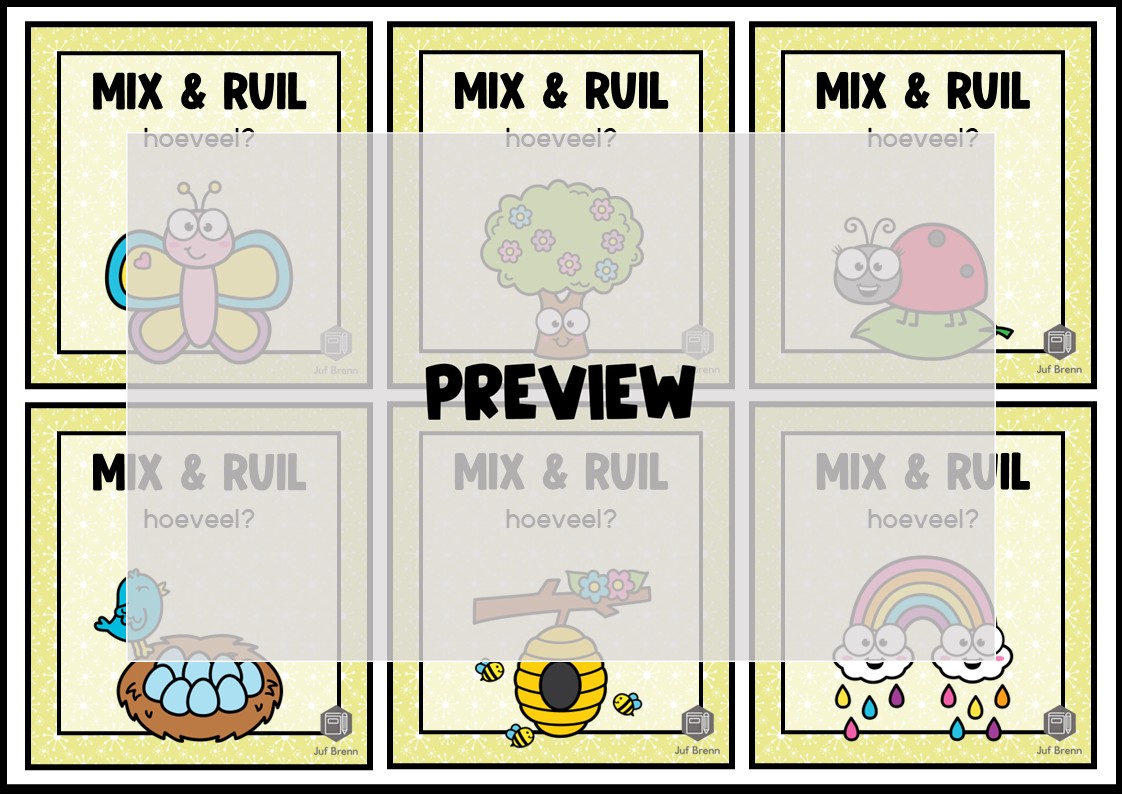 Deze download bevat Mix & Ruil en Vraag & Ruil. Deze coöperatieve werkvorm kan gebruikt worden voor het oefenen met de telrij tot 10. Het zijn 36 kaartjes. Voor vraag en ruil kun je de dubbelzijdige versie printen, voor mix en ruil de enkelzijdige versie. Het is geschikt voor groep 3.