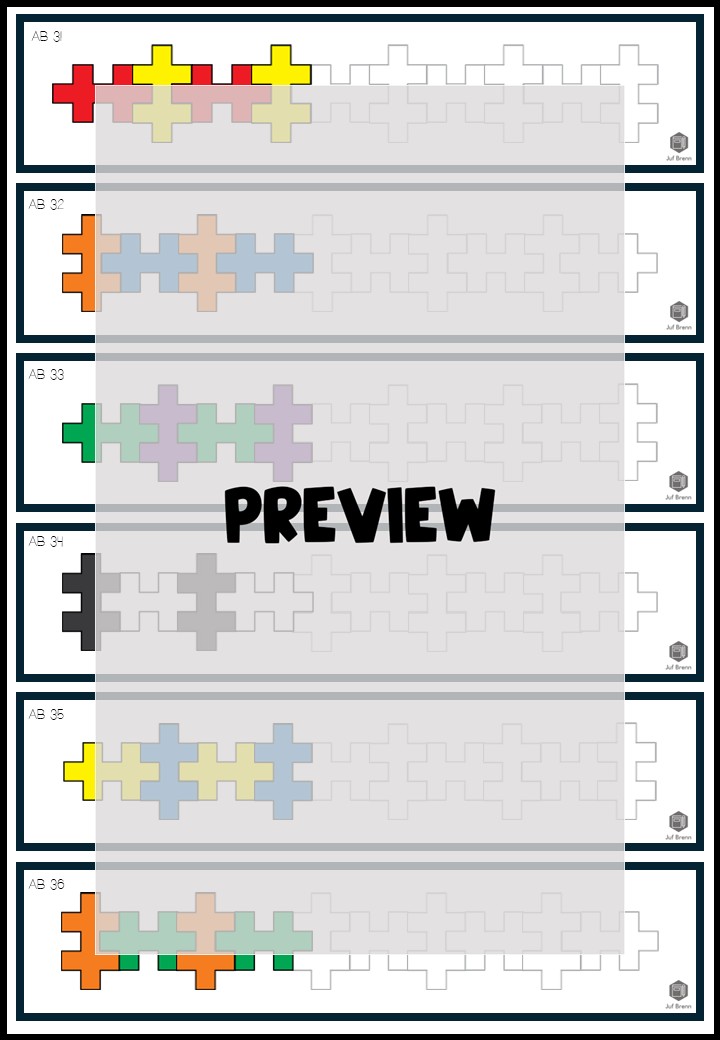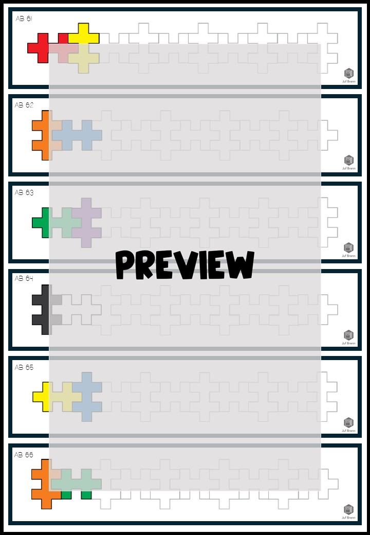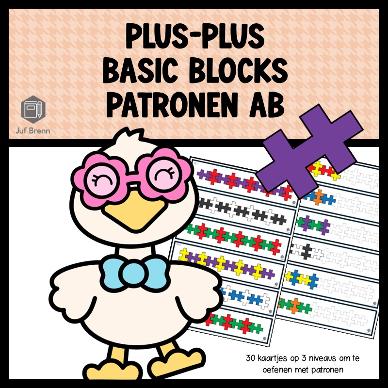 Deze download bevat patronen om te gebruik bij Plus-Plus blocks met de kleur basic. Hiermee kun je jouw leerlingen laten oefenen met het leggen van patronen met een patroonherhaling AB. Er kan geoefend worden op drie niveaus van ieder 30 kaartjes. Geschikt voor groep 1 t/m 4.