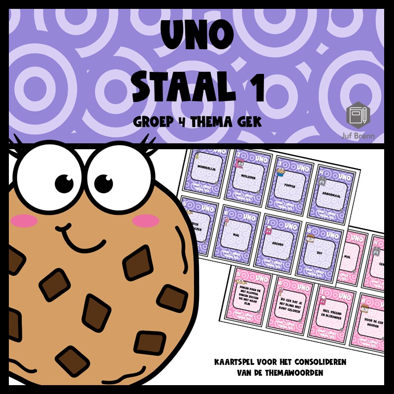 Deze download bevat UNO. Dit spel sluit aan bij Staal 1 groep 4 thema gek en kun je inzetten voor het consolideren.  Alle woorden + betekenissen zitten erin. Wil je weten hoe dit spel werkt? Klik dan hier.