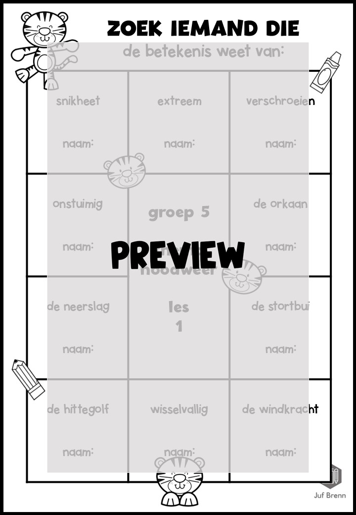 Deze download bevat Zoek iemand die. Het sluit aan bij Staal 1. Deze versie van Zoek iemand die kan ingezet worden voor het consolideren van de themawoorden. Het zijn 4 werkbladen: 1 voor elke les en 2 mix. Het is geschikt voor groep 5.