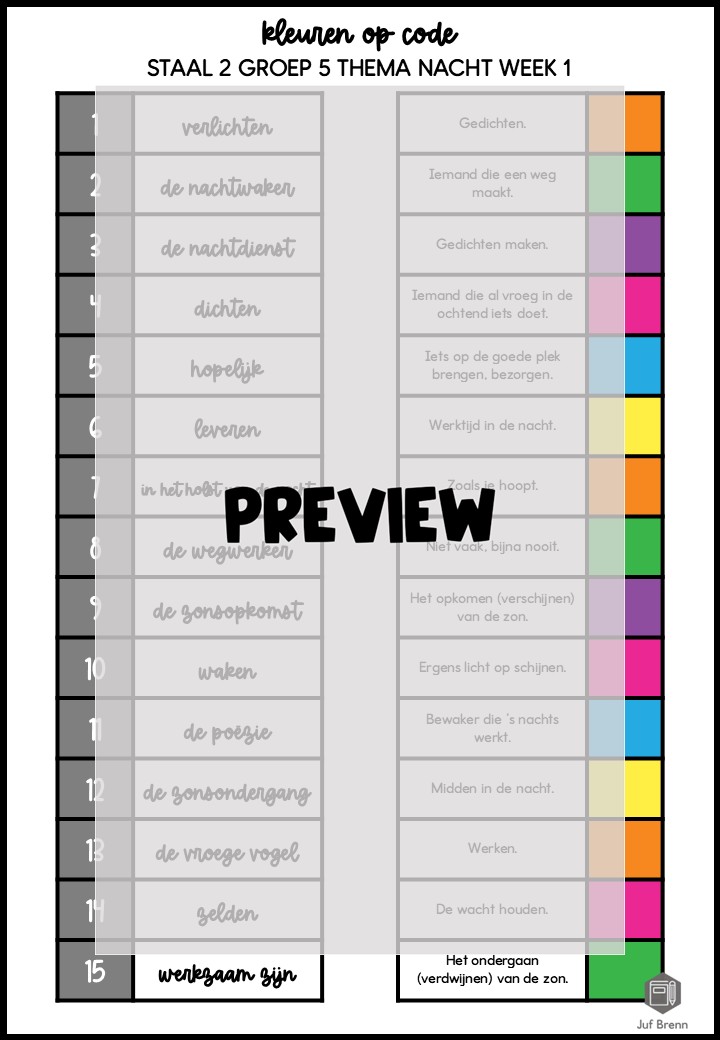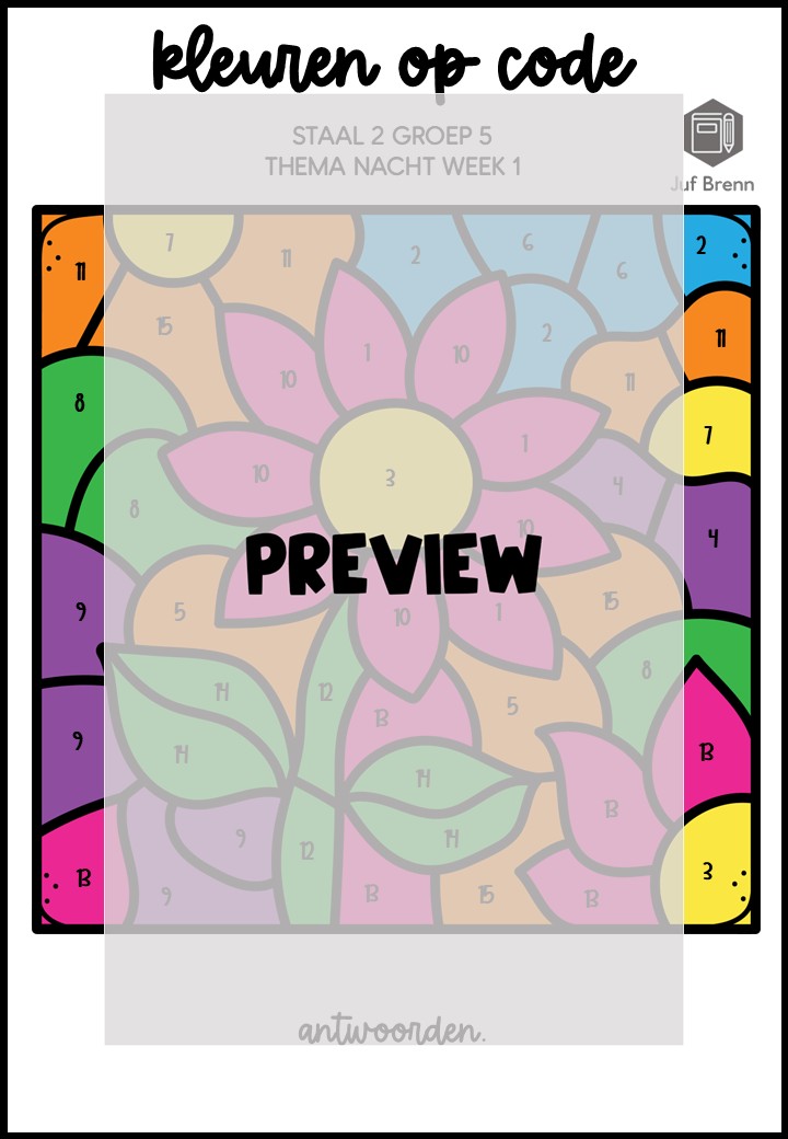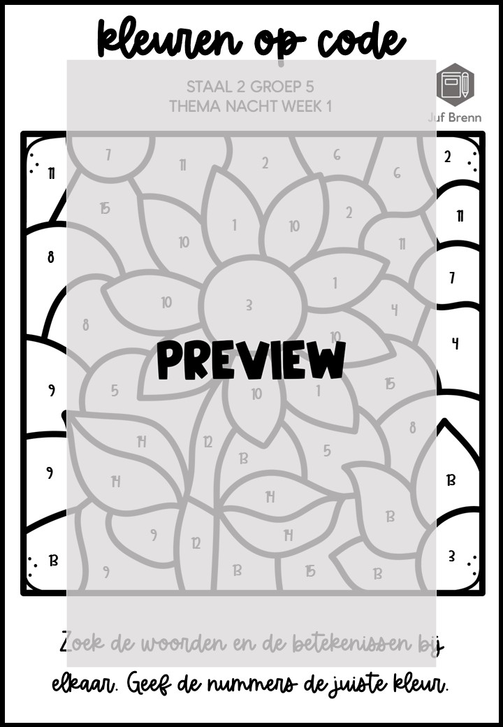 Deze download bevat Kleuren Op Code. Deze werkbladen sluiten aan bij Staal (versie 2) groep 5 thema nacht en kun je inzetten voor het consolideren. Het zijn in totaal 4 verschillende werkbladen. Iedere week heeft een eigen werkblad, en er zitten twee werkbladen bij waar week 1/2/3 gemixt zijn.