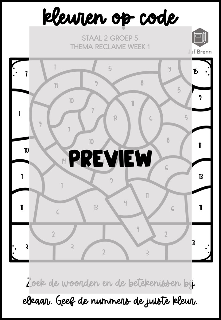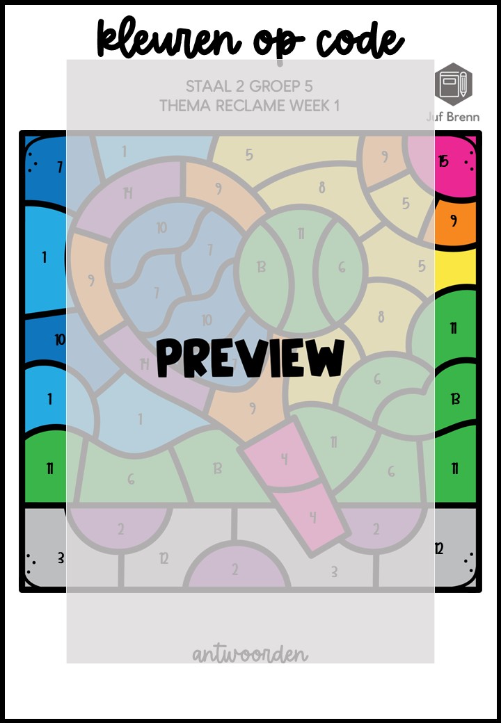 Deze download bevat Kleuren Op Code. Deze werkbladen sluiten aan bij Staal (versie 2) groep 5 thema reclame en kun je inzetten voor het consolideren. Het zijn in totaal 4 verschillende werkbladen. Iedere week heeft een eigen werkblad, en er zitten twee werkbladen bij waar week 1/2/3 gemixt zijn.