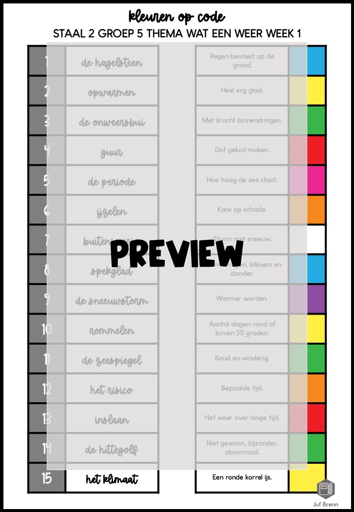 STAAL 2 WOORDENSCHAT KLEUREN OP CODE GROEP 5 THEMA WAT EEN WEER