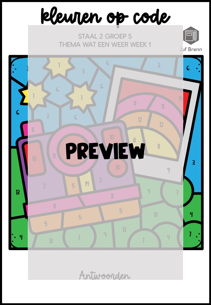 Deze download bevat Kleuren Op Code. Deze werkbladen sluiten aan bij Staal (versie 2) groep 5 thema wat een weer en kun je inzetten voor het consolideren. Het zijn in totaal 4 verschillende werkbladen. Iedere week heeft een eigen werkblad, en er zitten twee werkbladen bij waar week 1/2/3 gemixt zijn.