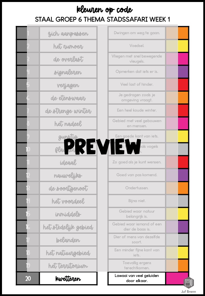 STAAL 2 WOORDENSCHAT KLEUREN OP CODE GROEP 6 THEMA STADSSAFARI