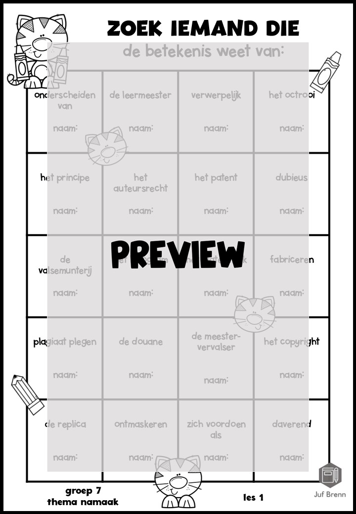 Deze download bevat Zoek iemand die. Het sluit aan bij Staal 2. Deze versie van Zoek iemand die kan ingezet worden voor het consolideren van de themawoorden. Het zijn 4 werkbladen: 1 voor elke les en 2 mix. Het is geschikt voor groep 7.