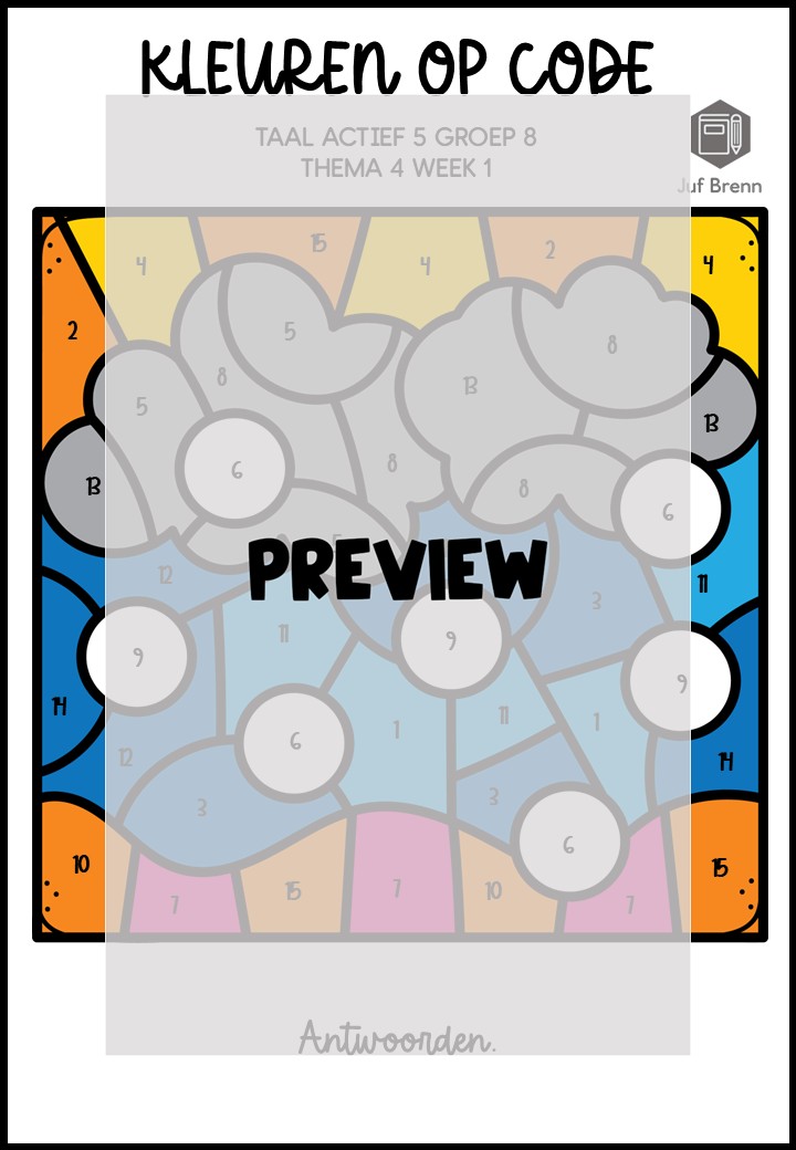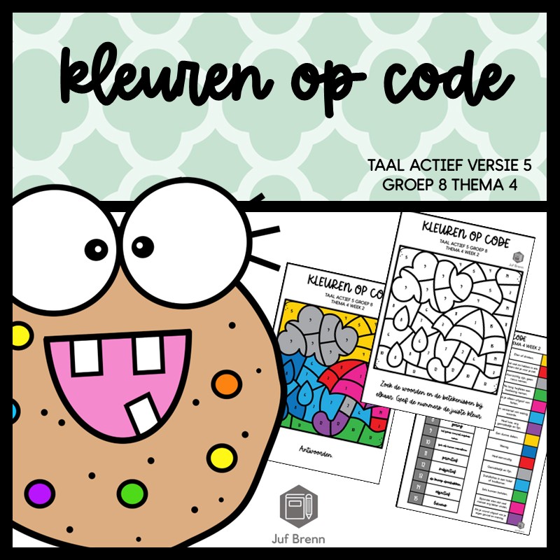 Deze download bevat Kleuren Op Code. Deze werkbladen sluiten aan bij Taal Actief (versie 5) groep 8 thema 4 en kun je inzetten voor het consolideren. Het zijn in totaal 5 verschillende werkbladen. Iedere week heeft een eigen werkblad, en er zitten twee werkbladen bij waar week 1/2/3 gemixt zijn.