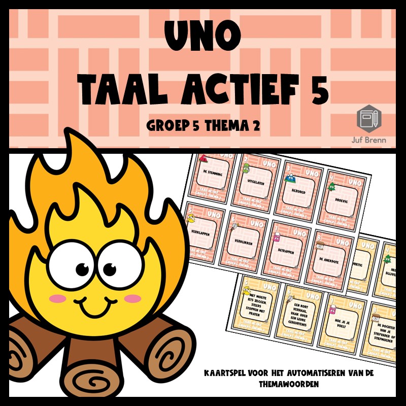 Deze download bevat UNO. Dit spel sluit aan bij Taal Actief (versie 5) groep 5 thema 2 en kun je inzetten voor het consolideren. Het zijn 114 kaartjes. Alle woorden + betekenissen zitten erin. Wil je weten hoe dit spel werkt? Klik dan hier.