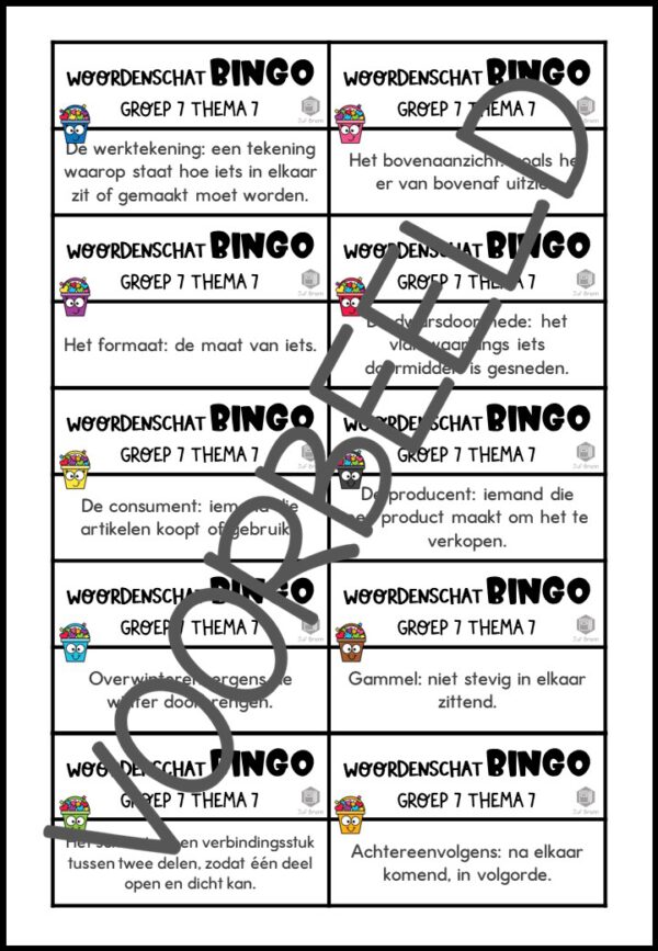 Deze download bevat Woordenschat Bingo. Het is geschikt voor groep 7.