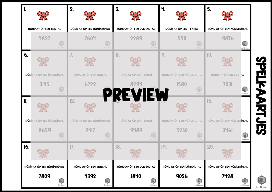 Deze download bevat Tik Tak Kerst! Dit spel kan gebruikt worden voor het oefenen met het afronden tot 10.000. Er moet afgerond worden op tientallen, honderdtallen en duizendtallen. Dit product bevat een spelbord, kaartjes voor de spelers (fiches), 40 kaartjes voor het spelbord en een antwoordenblad. Wil je weten hoe het spel werkt? Ik schreef een speluitleg over. Het is geschikt voor groep 6/7/8.