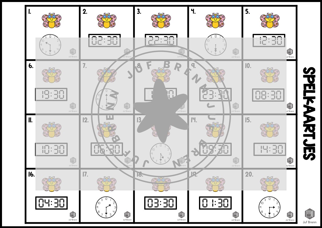 Deze download bevat Tik Tak Lente! Dit spel kan gebruikt worden voor het oefenen met klokkijken: benoemen van halve uren anoloog en digitaal. Dit product bevat een spelbord, kaartjes voor de spelers (fiches), 36 kaartjes voor het spelbord en een antwoordenblad. Het design van klokkijken hele uren, halve uren en kwartieren is identiek zodat je makkelijk kunt mixen naar (onderwijs)behoefte. Het is geschikt voor groep 3/4.