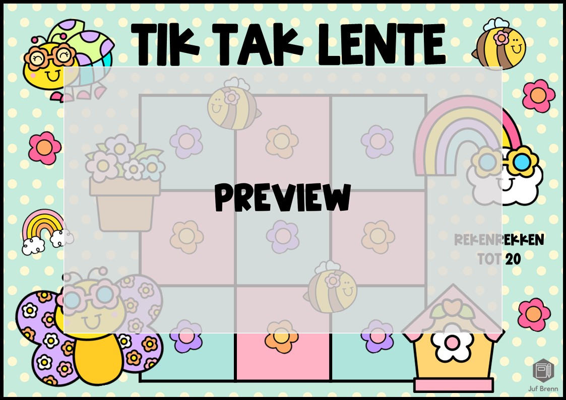 Deze download bevat Tik Tak Lente Dit spel kan gebruikt worden voor het herkennen van de getalbeelden van de rekenrekken tot 20. Dit product bevat een spelbord, kaartjes voor de spelers (fiches), 22 kaartjes voor het spelbord en een antwoordenblad. Wil je weten hoe het spel werkt? Ik schreef een speluitleg over de winterversie. Het is geschikt voor groep 3/4.