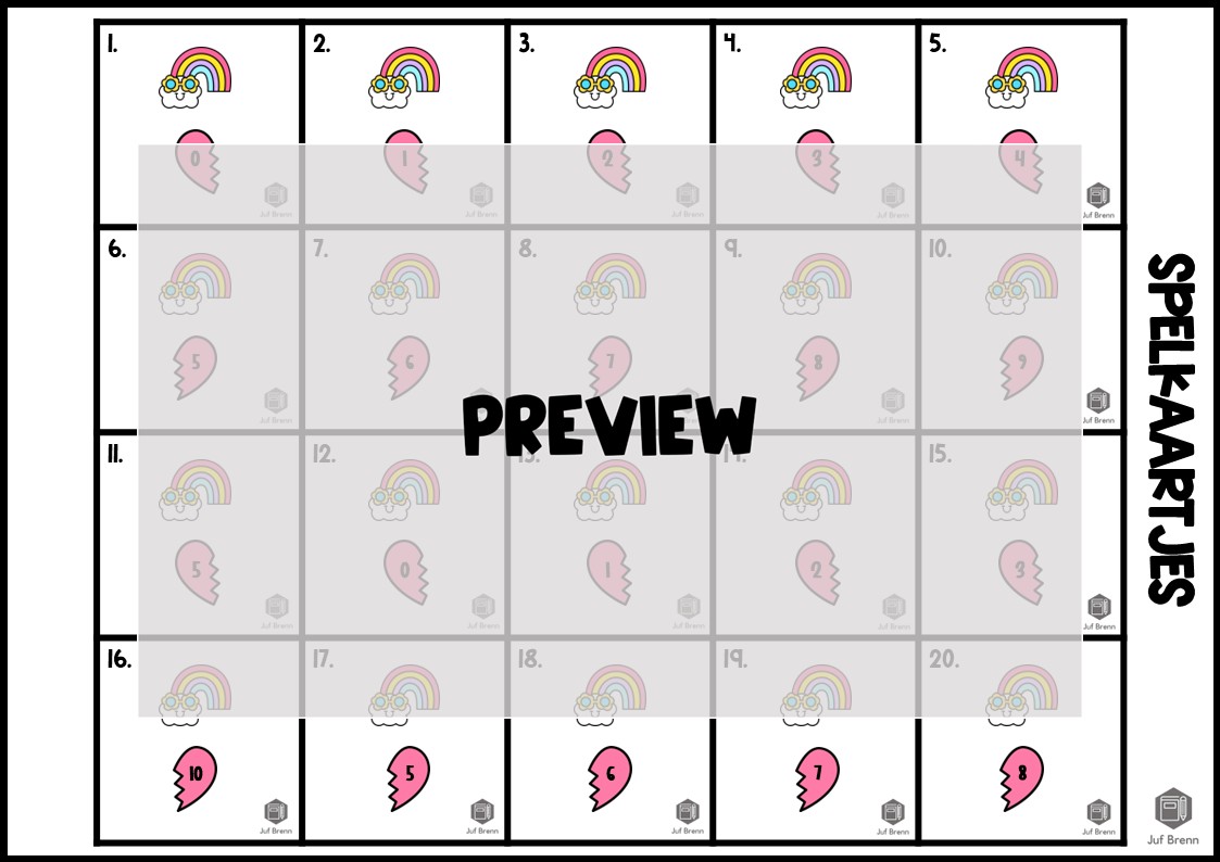 Deze download bevat Tik Tak Lente! Dit spel kan gebruikt worden voor het oefenen en / of automatiseren van de verliefde harten. Dit product bevat een spelbord, kaartjes voor de spelers (fiches), 24 kaartjes (alle mogelijkheden zitten er 2 x in) voor het spelbord en een antwoordenblad. Wil je weten hoe het spel werkt? Ik schreef een speluitleg over de winter variant. Het is geschikt voor groep 3.