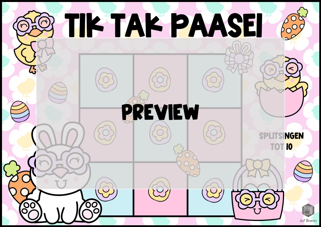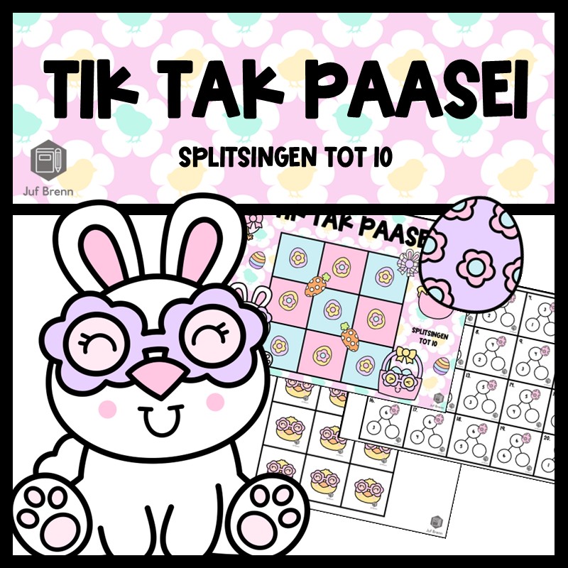 Deze download bevat Tik Tak Paasei Dit spel kan gebruikt worden voor het oefenen en / of automatiseren van de splitsingen tot 10. Dit product bevat een spelbord, kaartjes voor de spelers (fiches), 40 kaartjes (alle mogelijkheden zitten er 2 x in) voor het spelbord en een antwoordenblad. Wil je weten hoe het spel werkt? Ik schreef een speluitleg over de wintervariant. Het is geschikt voor groep 3/4.
