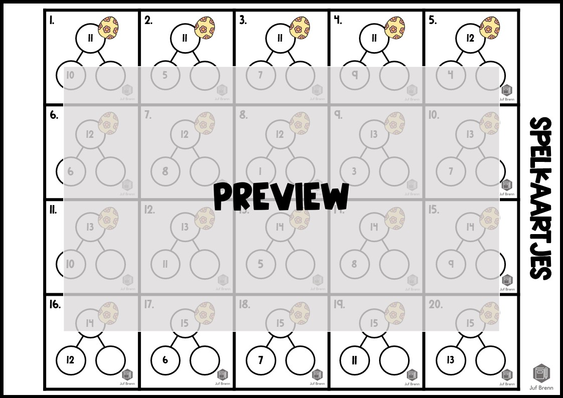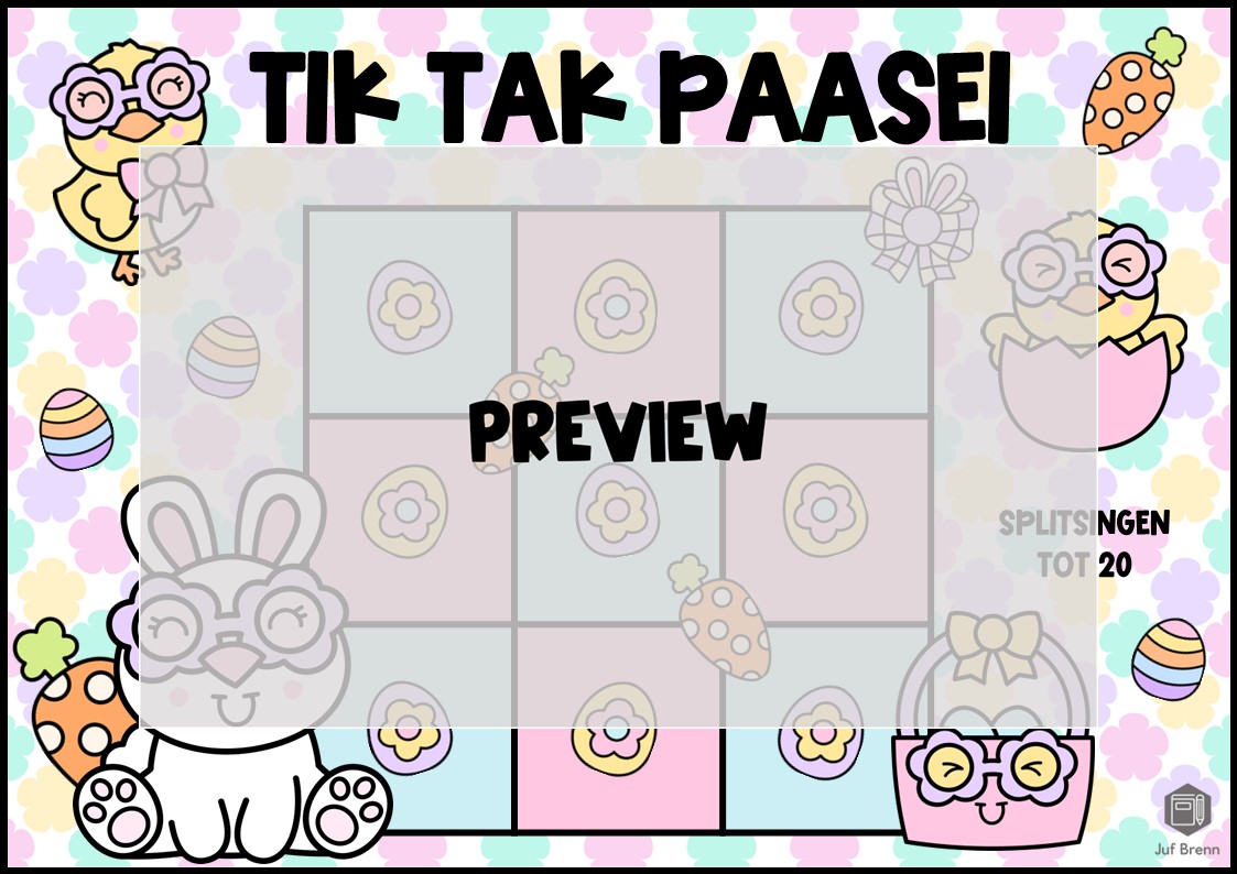 Deze download bevat Tik Tak Paasei Dit spel kan gebruikt worden voor het oefenen en / of automatiseren van de splitsingen tot 20. Dit product bevat een spelbord, kaartjes voor de spelers (fiches), 40 kaartjes (alle mogelijkheden zitten er 2 x in) voor het spelbord en een antwoordenblad. Wil je weten hoe het spel werkt? Ik schreef een speluitleg over de wintervariant. Het is geschikt voor groep 3/4.