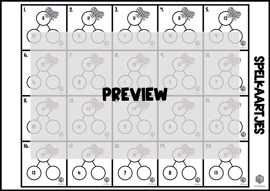 Deze download bevat Tik Tak Sneeuw! Dit spel kan gebruikt worden voor het oefenen en / of automatiseren van de splitsingen tot 20. Dit product bevat een spelbord, kaartjes voor de spelers (fiches), 40 kaartjes (alle mogelijkheden zitten er 2 x in) voor het spelbord en een antwoordenblad. Wil je weten hoe het spel werkt? Ik schreef een speluitleg over. Het is geschikt voor groep 3/4.