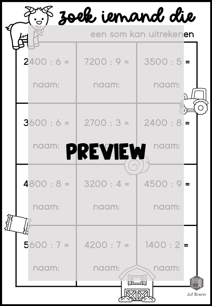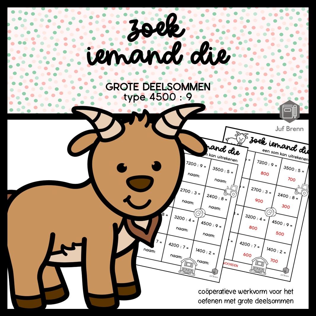 Deze download bevat Zoek iemand die. Met deze werkvorm kun je jouw leerlingen laten oefenen grote deelsommen van het type 4500 : 9. Het is geschikt voor groep 5/6. Klik op de downloadbutton hieronder om het bestand te downloaden.