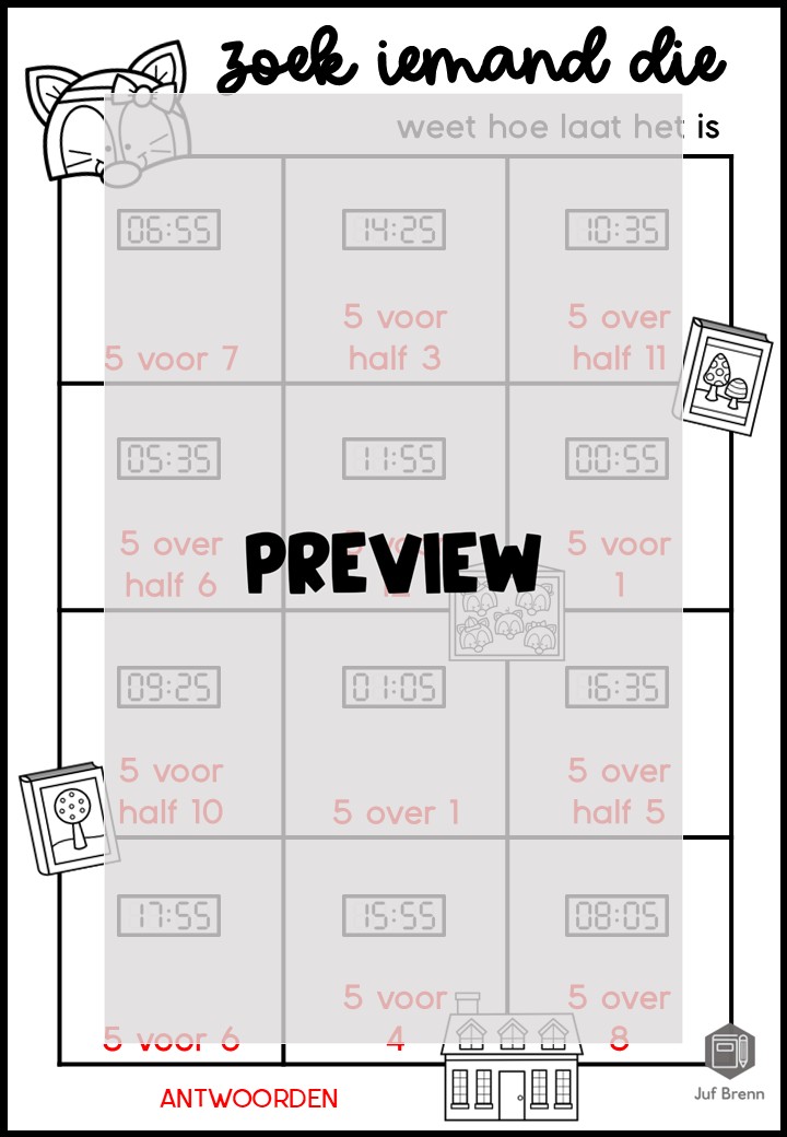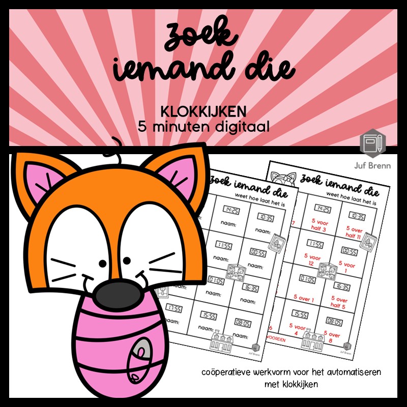 Deze download bevat Zoek iemand die. Met deze werkvorm kun je jouw leerlingen laten oefenen met het klokkijken van 5 minuten digitaal. Het is geschikt voor groep 4/5/6. Klik op de downloadbutton hieronder om het bestand te downloaden.