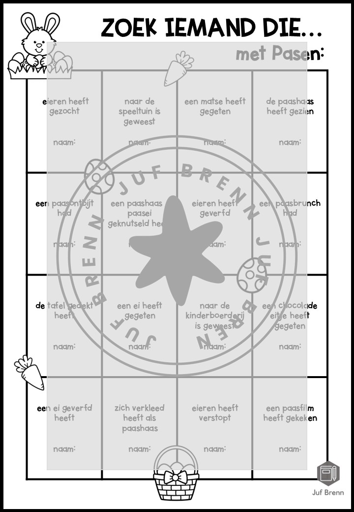 Deze download bevat Zoek iemand die. Deze versie van Zoek iemand die kan ingezet worden na het paasweekend / paasvakantie. Het is geschikt voor groep 4 t/m 8.