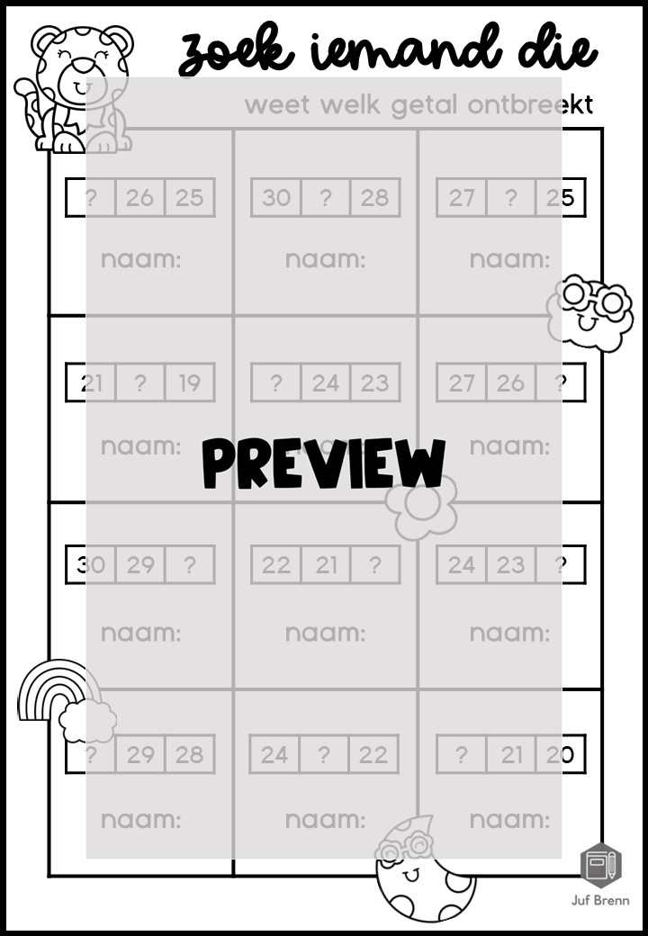 Deze download bevat Zoek iemand die. Met deze werkvorm kun je jouw leerlingen laten oefenen met de telrij tot 30. Het is geschikt voor groep 3. Klik op de downloadbutton hieronder om het bestand te downloaden.