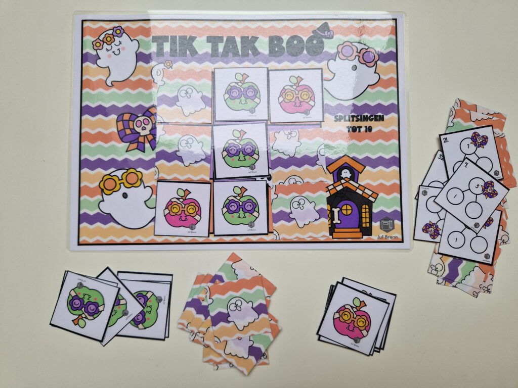 NIEUW! Tik Tak Boo is een spel dat past in het thema Halloween. Maar uiteraard ben je niet thema gebonden met dit spel. Met dit spel kun je jouw leerlingen laten oefenen / automatiseren met met de splitsingen tot 10. Hieronder lees je alles over dit spel.