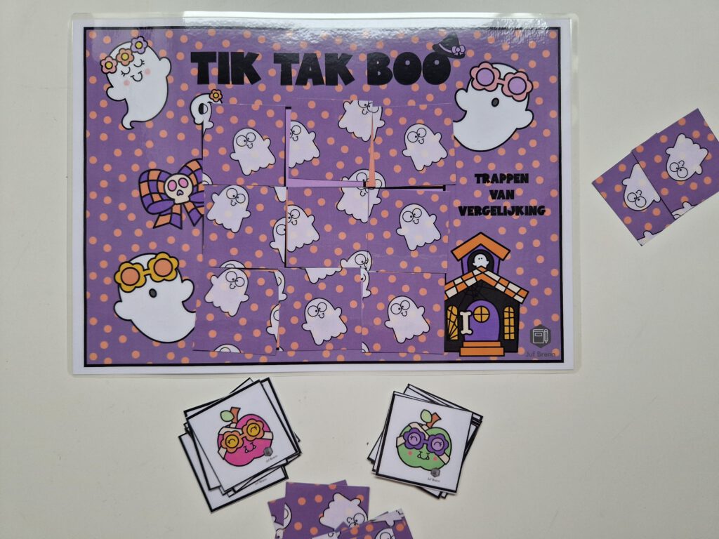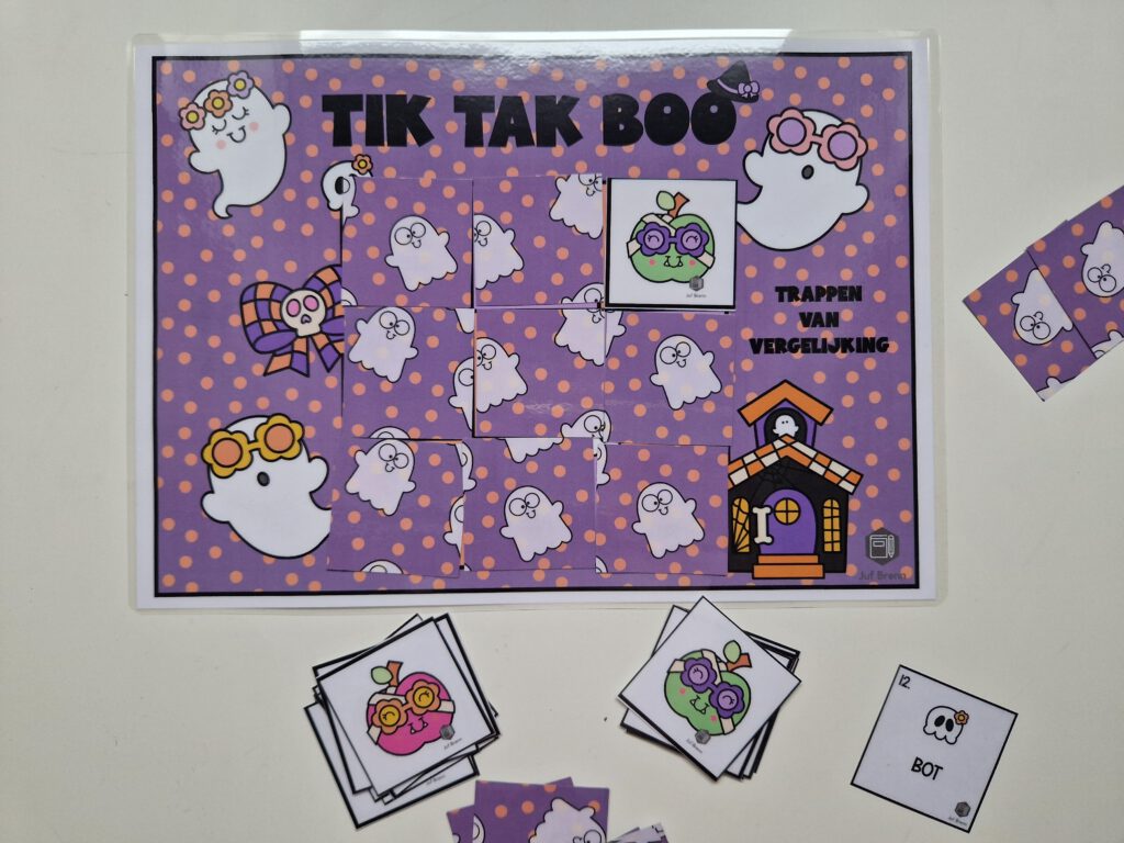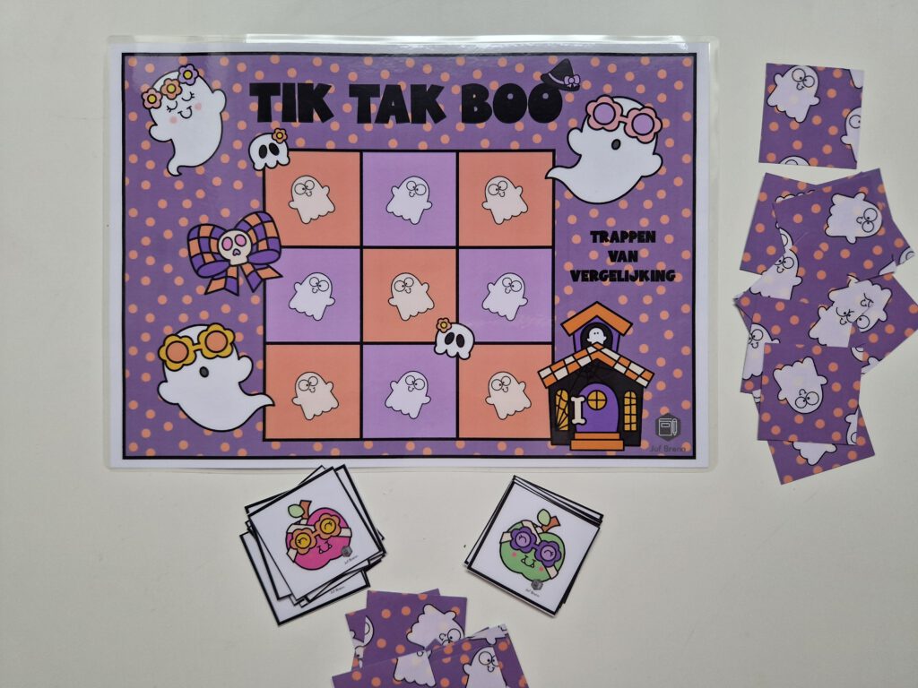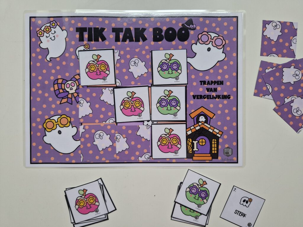 NIEUW! Tik Tak Boo is een spel dat past in het thema Halloween. Maar uiteraard ben je niet thema gebonden met dit spel. Met dit spel kun je jouw leerlingen laten oefenen / automatiseren met met de trappen van vergelijking. Hieronder lees je alles over dit spel.