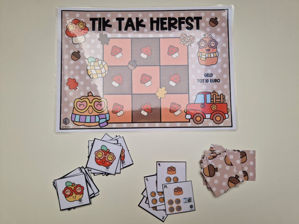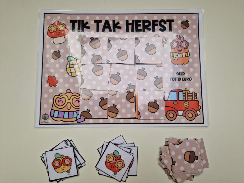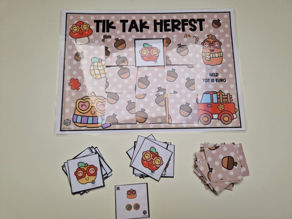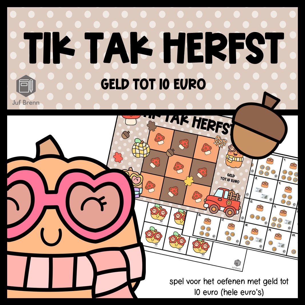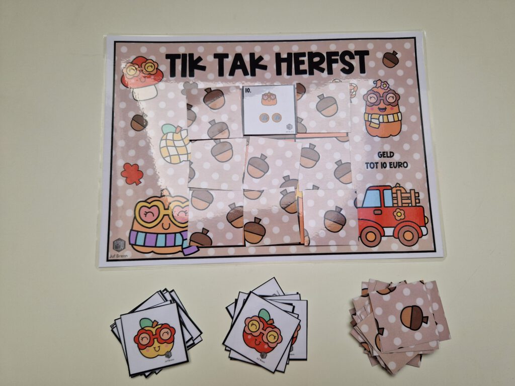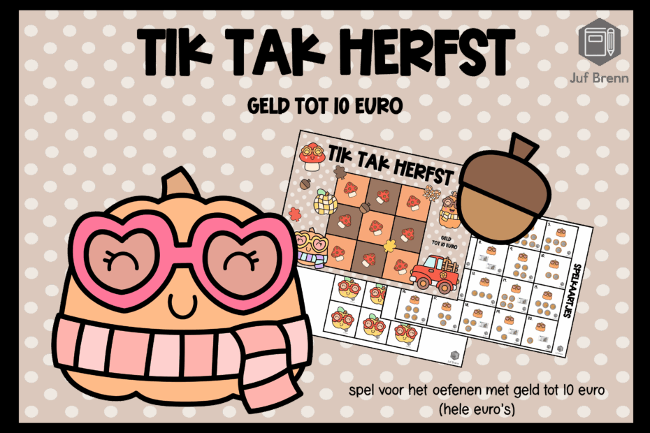 NIEUW! Tik Tak Herfst is een spel dat past in het thema herfst. Maar uiteraard ben je niet thema gebonden met dit spel. Met dit spel kun je jouw leerlingen laten oefenen / automatiseren met het herkennen en benoemen van geld tot 10 euro in hele euro’s. Hieronder lees je alles over dit spel.