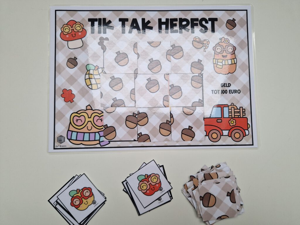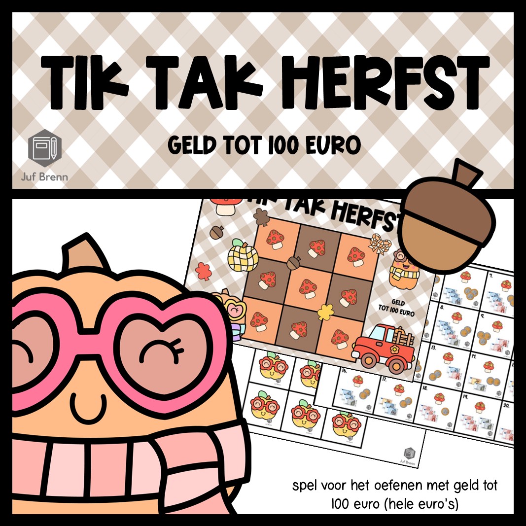 NIEUW! Tik Tak Herfst is een spel dat past in het thema herfst. Maar uiteraard ben je niet thema gebonden met dit spel. Met dit spel kun je jouw leerlingen laten oefenen / automatiseren met het herkennen en benoemen van geld tot 100 euro in hele euro’s. Hieronder lees je alles over dit spel.
