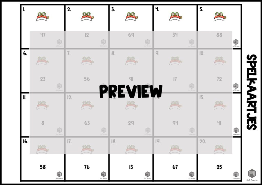 Schud de kaartjes met de woorden en kies blind 9 kaartjes. Leg deze kaartjes met de rug naar boven op het spelbord. Iedere speler kiest een set spelerskaartjes. Het uitgangspunt van het spel is hetzelfde als bij boter, kaas en eieren: de spelers proberen drie op een rij te krijgen. Dit doen ze door een kaartje op het spelbord om te draaien, het getal hardop voor te lezen en daarna af te ronden. Is het goed? Dan mogen ze het kaartje vervangen door een eigen spelerskaartje (fiche). Is het antwoord fout, dan wordt het kaartje weer met de rug naar boven op het spelbord gelegd. De beurt van de speler is dan voorbij, zowel bij een goed als een fout antwoord. De speler die als eerste drie op een rij heeft, heeft gewonnen!