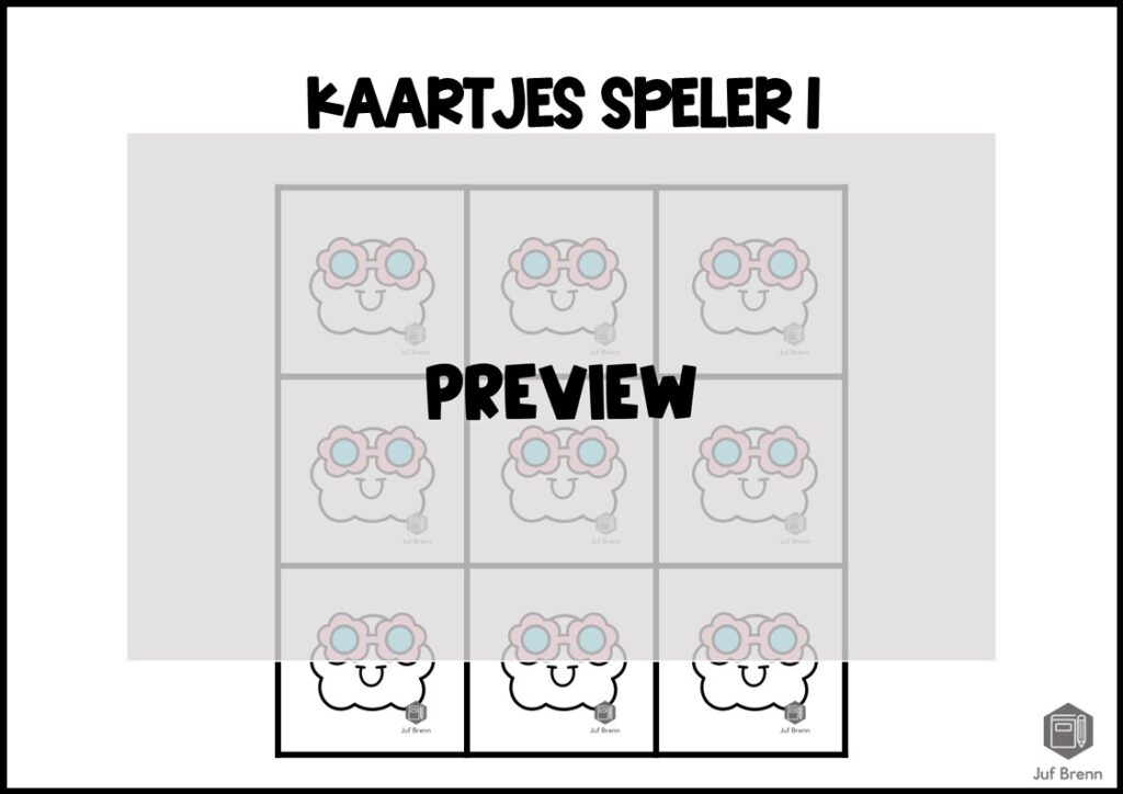 Print het spelbord, de kaartjes voor speler 1 en 2 en de 40 kaartjes met daarop de woorden. Je kunt er bij kaartjes met de woorden voor kiezen om ze dubbelzijdig te printen zodat er een kleurde achterkant toegevoegd wordt aan het kaartje.