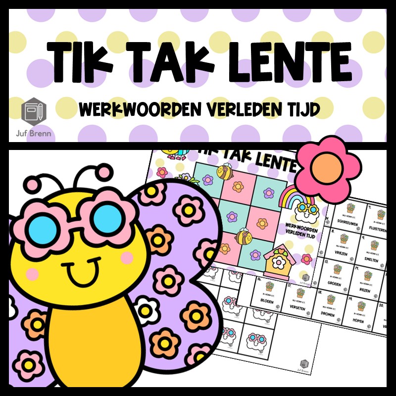 NIEUW! Tik Tak Lente is een spel dat past in het thema lente. Met dit spel kun je jouw leerlingen laten oefenen / automatiseren met met het vervoegen van werkwoorden: tegenwoordige tijd, verleden tijd en het voltooid deelwoord. Hieronder lees je alles over dit spel.