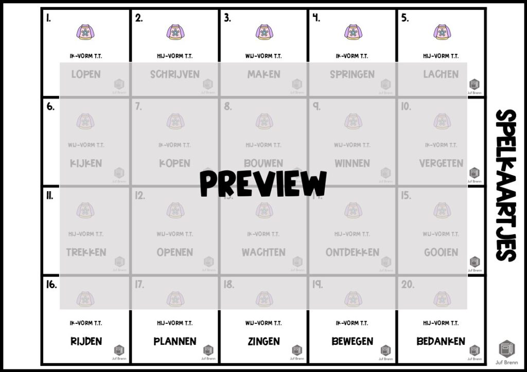 NIEUW! Tik Tak Sneeuw is een spel dat past in het thema winter. Met dit spel kun je jouw leerlingen laten oefenen / automatiseren met met het vervoegen van werkwoorden: tegenwoordige tijd, verleden tijd en het voltooid deelwoord. Hieronder lees je alles over dit spel.